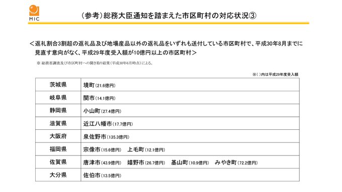 総務省自らがふるさと納税ランキングを作りました 大阪泉佐野市がぶっ