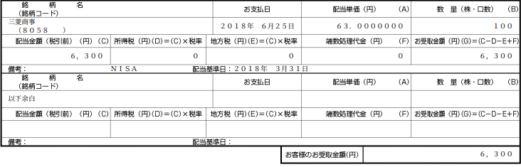 三菱商事 8058 より配当金をいただきました 配当金だけで生活